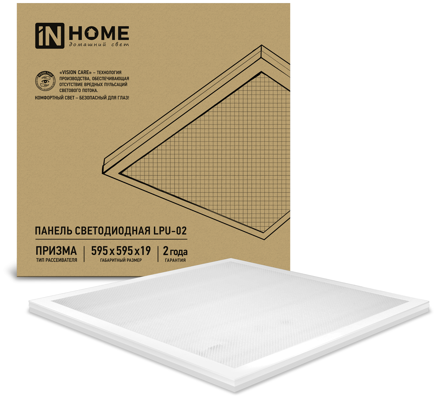 In Home LPU-02-ПРИЗМА 100Вт 6500К IP40 8500лм 230В 595х595х19мм встраив. с рассеив. призма универс. панель 4690612029795 (белый) 1 290 ₽