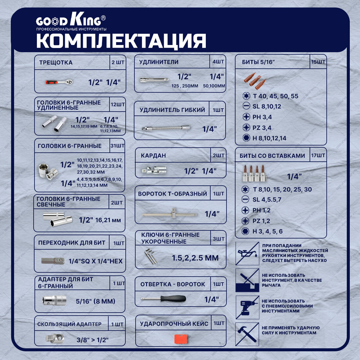 Набор инструментов GOODKING 94 предмета 1/2", 1/4" K-10094 информация: