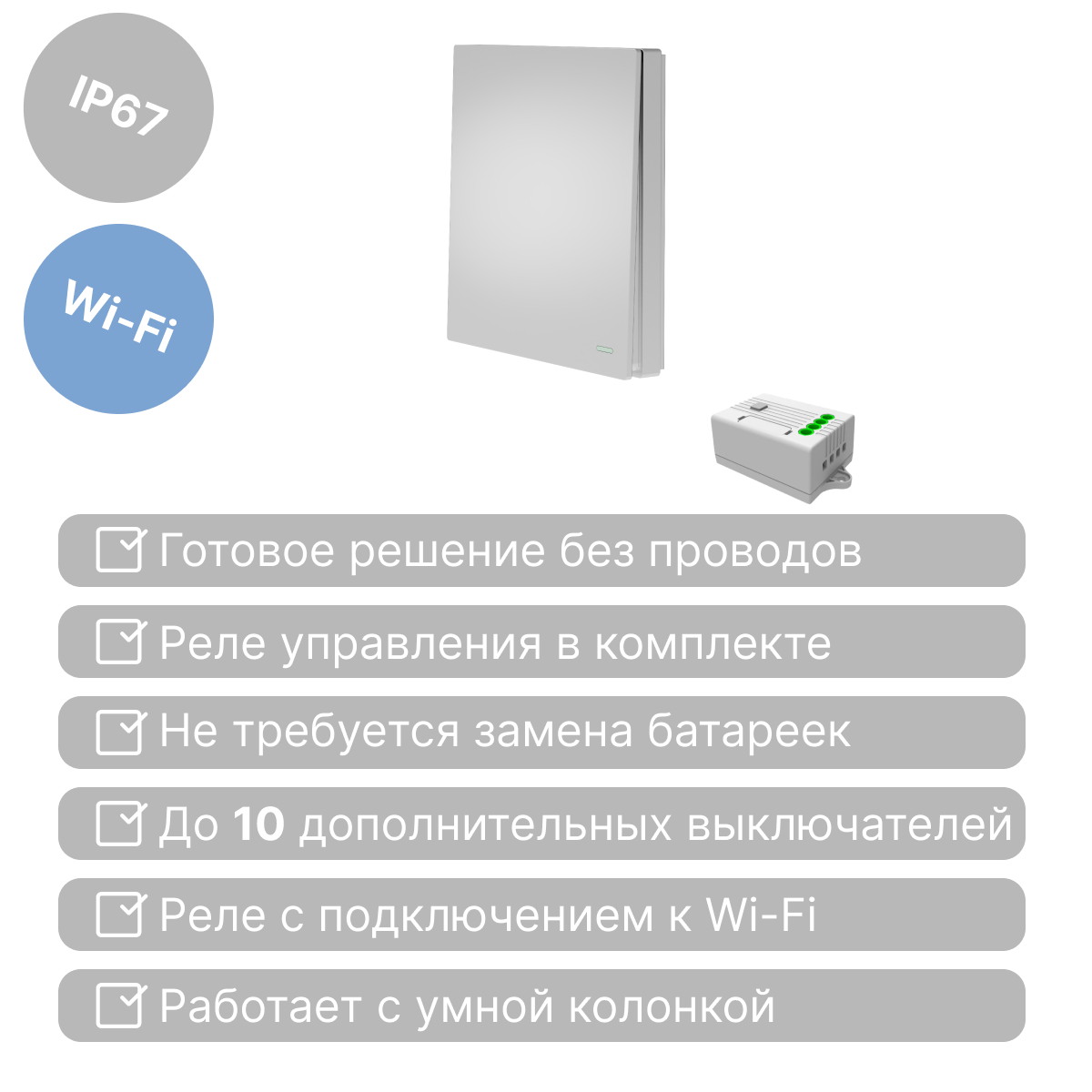 Беспроводной выключатель GRITT Space 2кл. белый комплект: 1 выкл. IP67, 2 реле 1000Вт