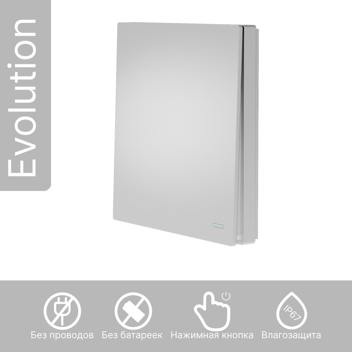 Умный беспроводной выключатель GRITT Evolution 1кл. серебристый комплект: 1 выкл. IP67, 1 реле 1000Вт 433+WiFi с управлением со смартфона EV221110SLWF информация: