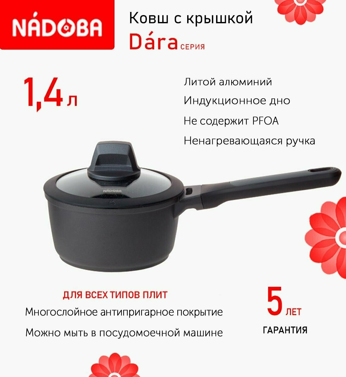Кухонный ковш Nadoba Dara 1,4 л антипригарное покрытие стеклянная крышка 16см информация: