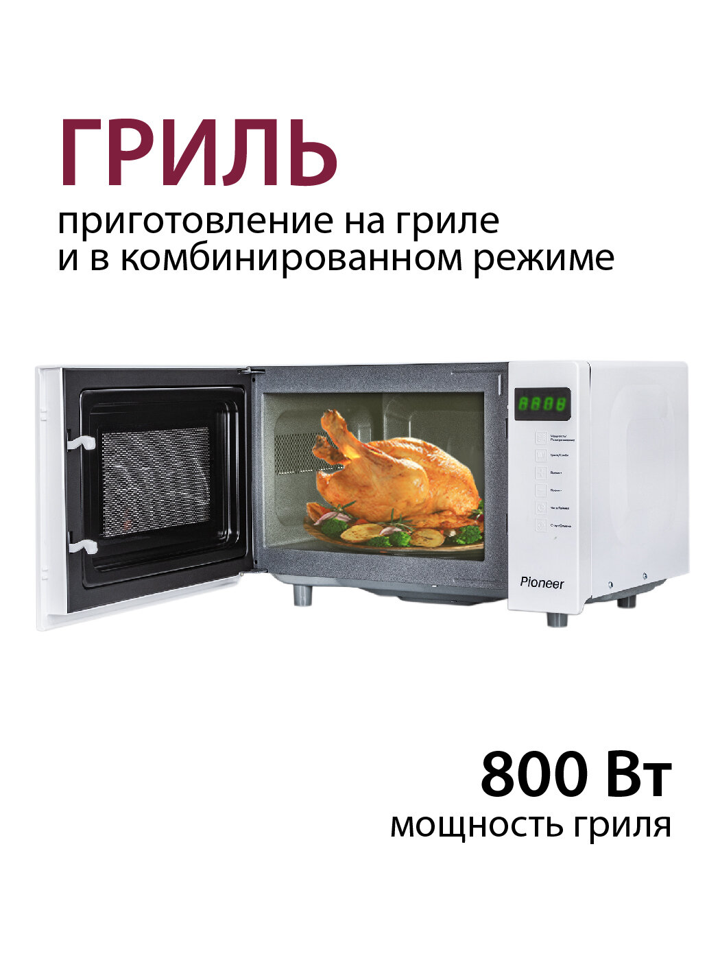 Дизайнерская микроволновая печь Pioneer MW256S с защитой от электромагнитного излучения, таймер 60 минут, блокировка от детей, 20 л, 700 Вт, гарантия 2 года информация: