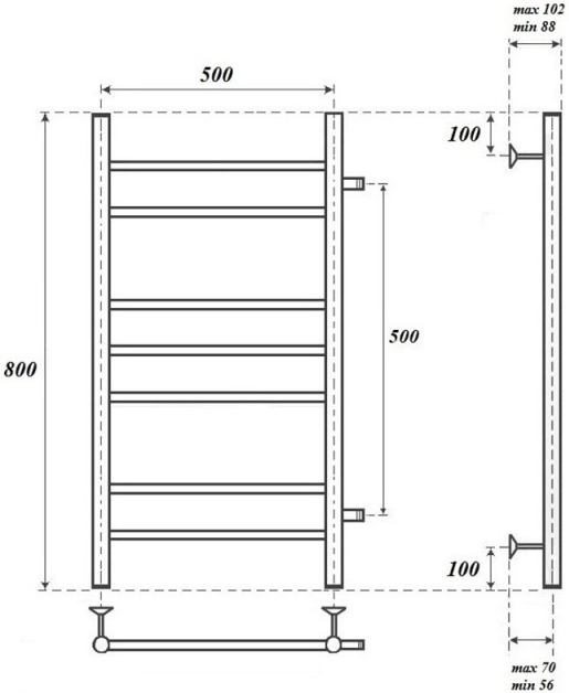 Полотенцесушитель водяной Point PN10558 П7 500x800 с боковым подключением 500, хром