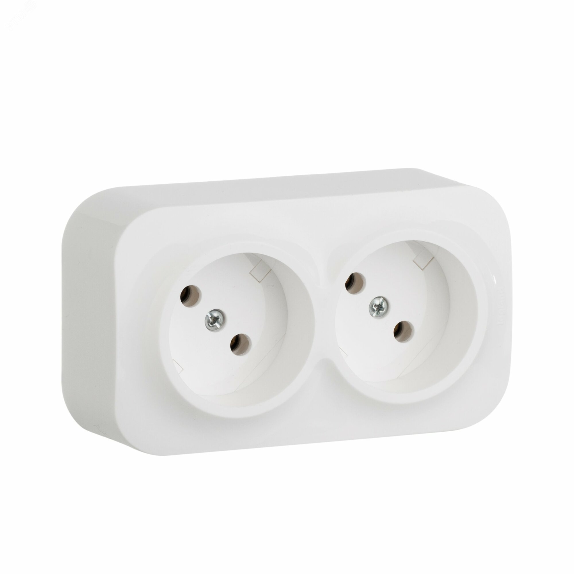 Розетка двойная предварительно соединенная без заземления 2х2К 16А без шторок, розетки в блоке предварительно соединены, Белый. Quteo