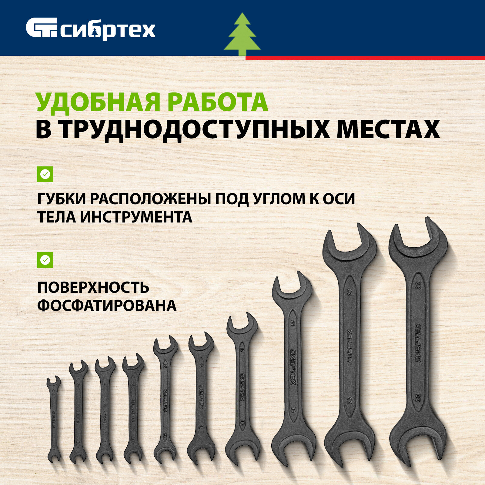 Набор ключей рожковых Сибртех 6 - 32 мм, 10 шт, CrV, фосфатированные, ГОСТ 2839 15224 информация: