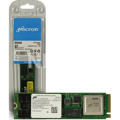 Диск CRUCIAL Micron SSD 7450 MAX, 800GB, M.2(22x80mm), NVMe 1.4, PCIe 4.0 x4, 3D TLC, R/W 5000/1400MB/s, IOPs 520 000/156 000, TBW 4300, DWPD 3 (12 мес.) информация:
