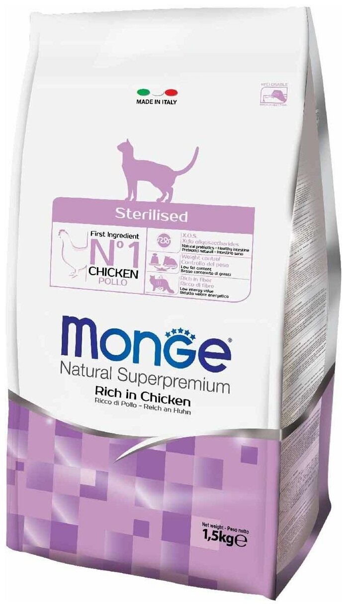 Сухой корм для стерилизованных кошек Monge Cat Sterilised, 1,5кг информация: