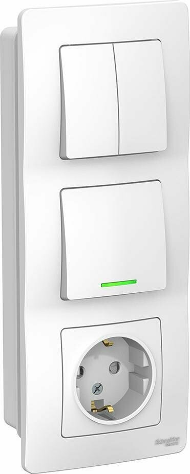 Блок Schneider Electric BLANCA BLNBS101211 с индикацией розетка + 2 выключателя белый