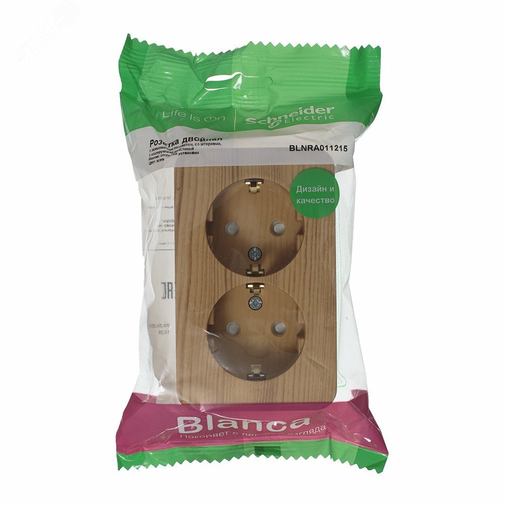 Розетка двухместная BLANCA, открытый монтаж, с заземлением, со шторками, ясень | код. BLNRA011215 | Schneider Electric ( 1шт. )