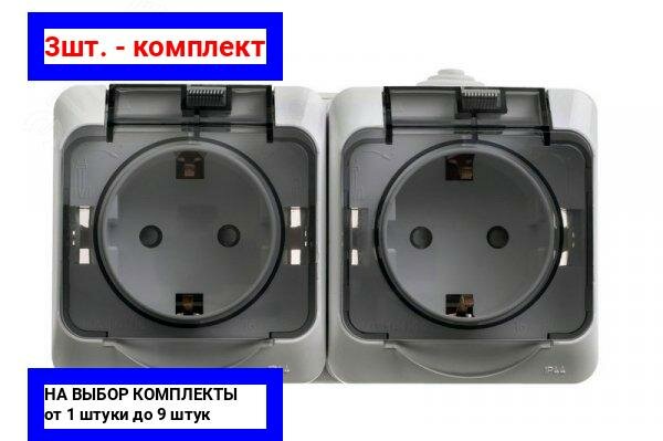 3шт. - Этюд Розетка двойная наружная с заземлением со шторками IP44 серая / Systeme Electric; арт. PA16-244C; оригинал / - комплект 3шт информация: