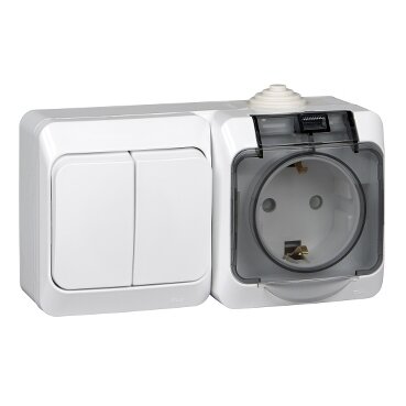 SE Этюд наружная Бел Блок: Розетка с заземлением со шторками + выключатель 2-клавишный IP44