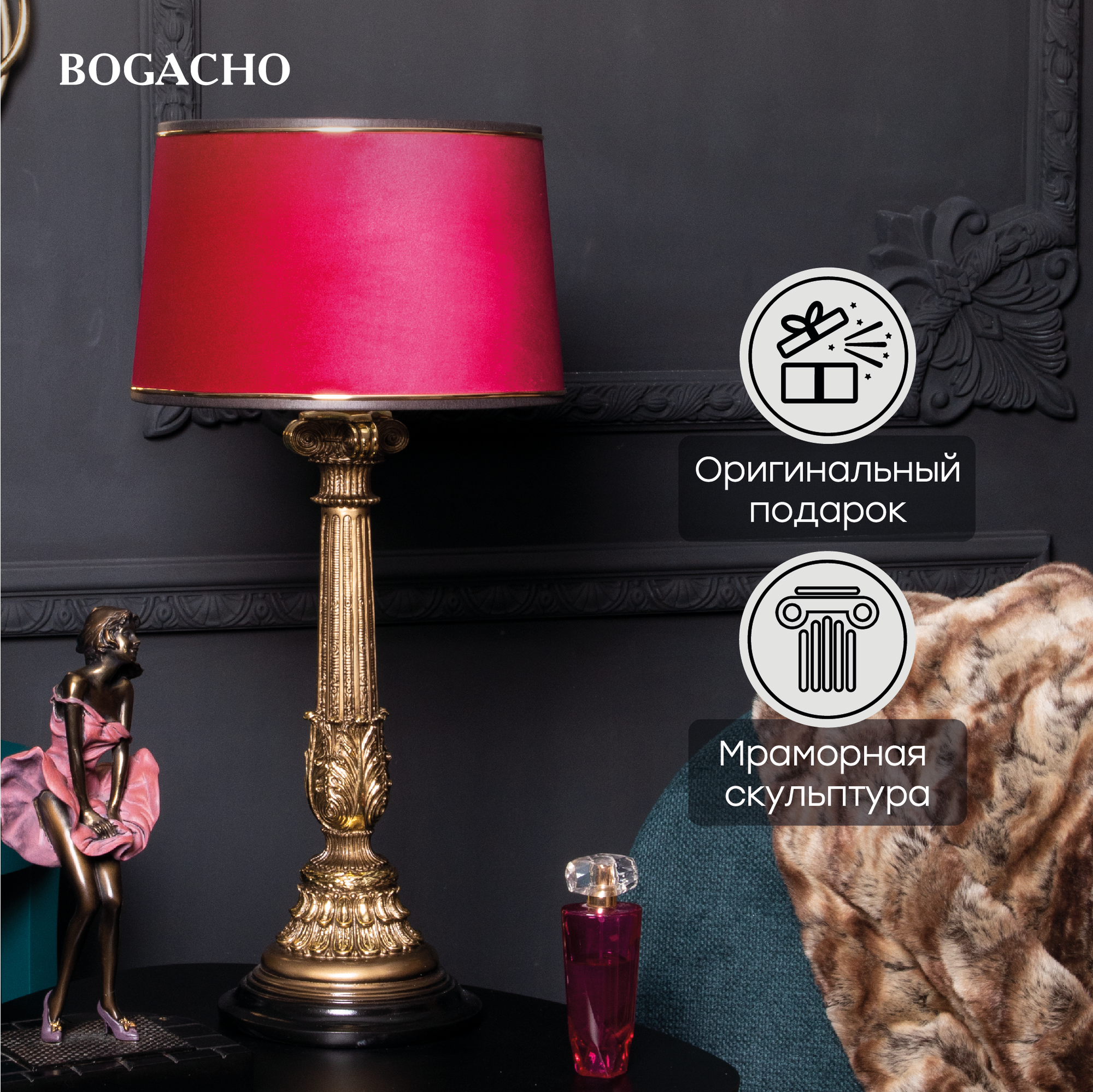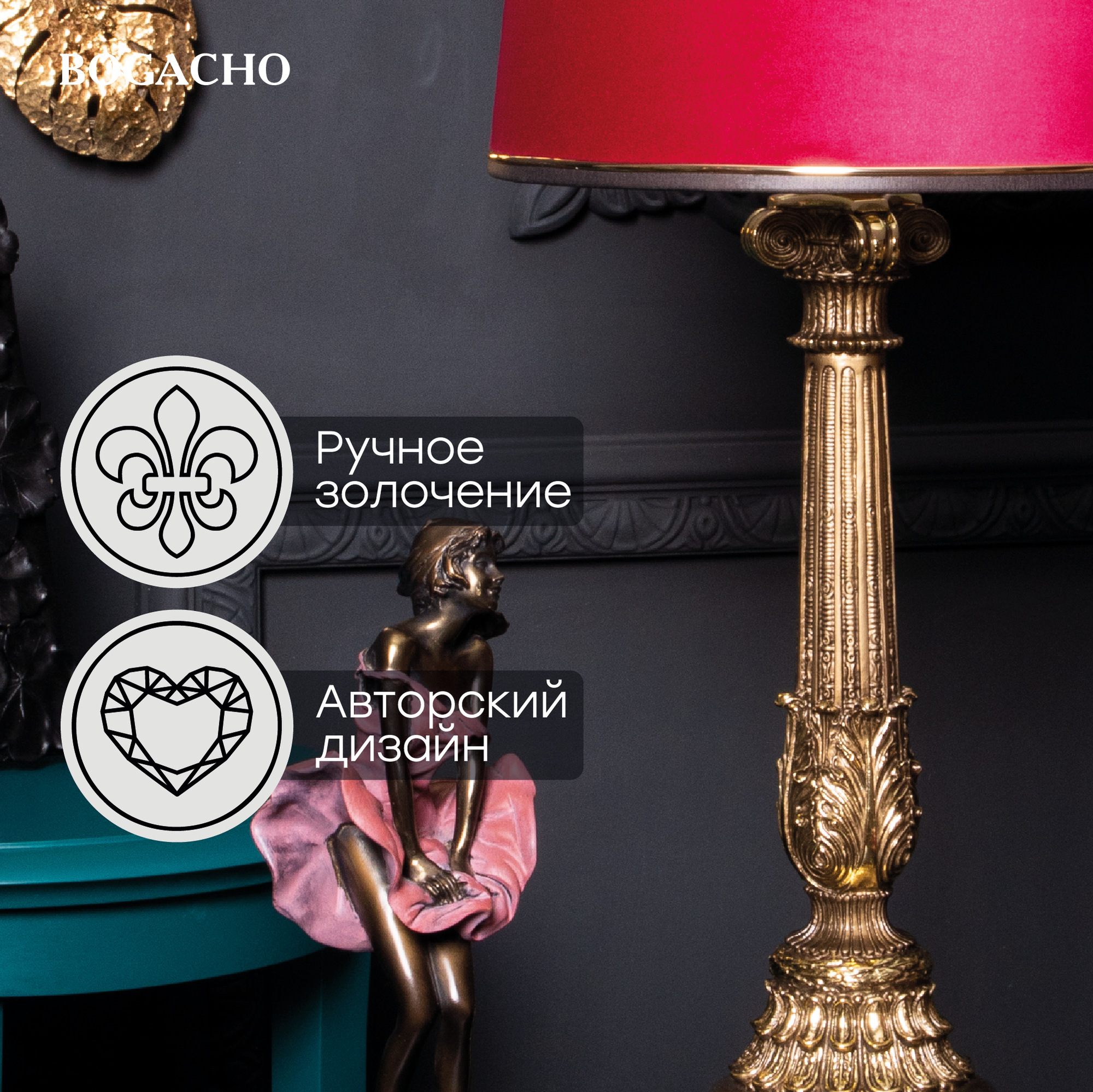 BOGACHO Настольная лампа Bogacho Корса бронзовая с красным абажуром Мадлен