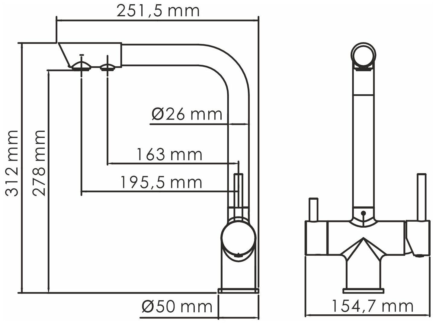 Смеситель для кухни с подключением к фильтру с питьевой водой из нержавеющей стали SUS304 Calorie CAL50116-3