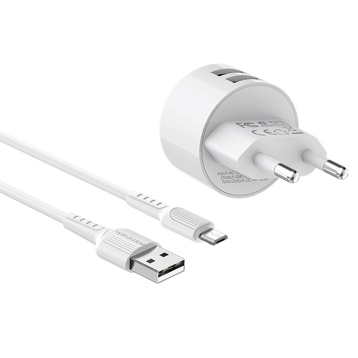 Сетевое зарядное устройство c 2 USB Borofone, BA23A, белое,micro