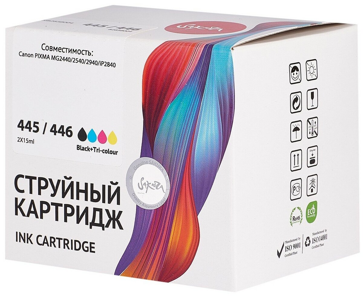 SAKURA PRINTING Струйный картридж Sakura 8283B004 (445 Black/ 446 Color) для Canon, мультипак, 15/15 мл., 150 к. 3 450 ₽