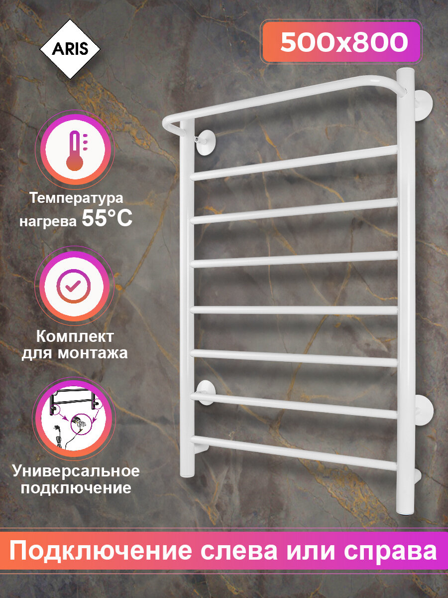 Электрический полотенцесушитель ARIS "Оазис" 500*800 (белый), 8 перекладин информация: