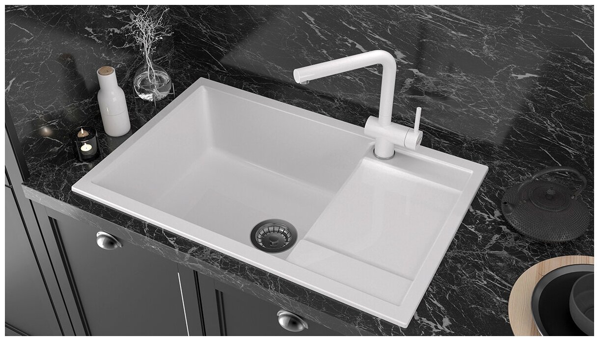 Кухонная мойка Paulmark Verlass PM317850-WH из кварца, Белая 16 500 ₽