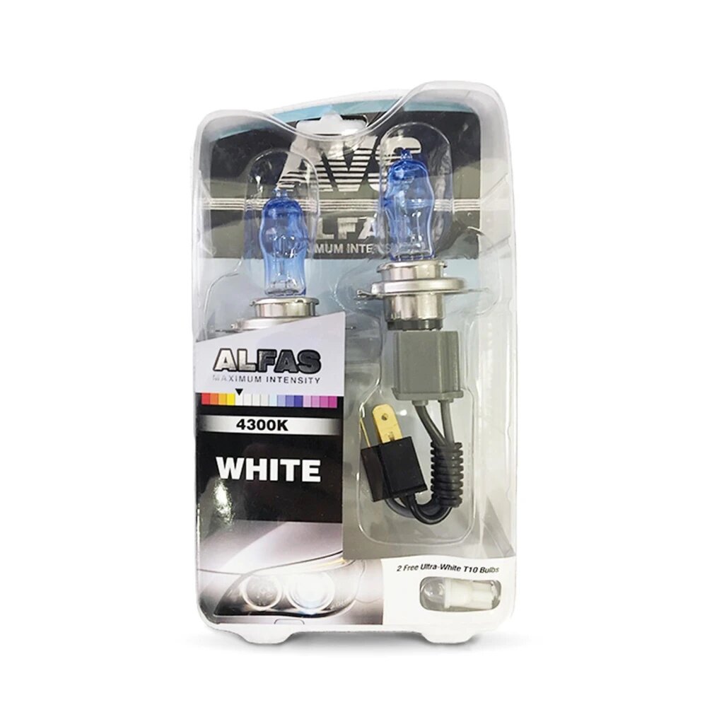 Лампа галогенная H4 12V 75/80W "AVS" Alfas (Maximum Intensity 4300К +2 Т10) (2 шт.)