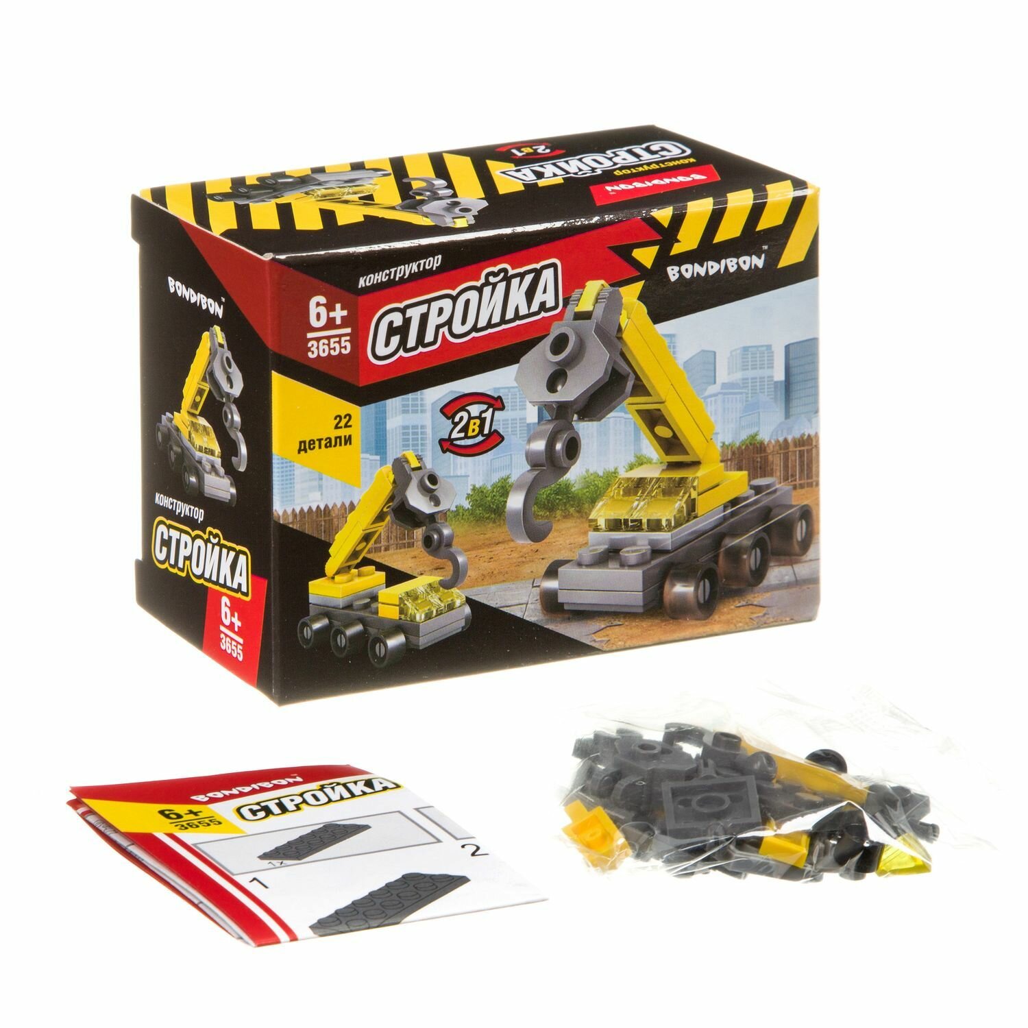 Конструктор Bondibon, Стройка, Подъемный кран, 22 дет., 2в1, BOX ВВ3655 информация: