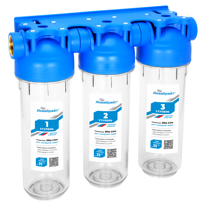 Отзывы на Трехступенчатый магистральный фильтр аквабрайт 1/2"SLIM LINE в комплекте ключ и кронштейн, АБФ-3-1/2
