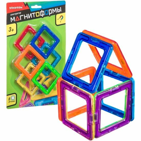 10 цен на Магнитный конструктор магнитоформы Bondibon, 6 квадратов, CRD 26x17 см, арт.JH8842E.