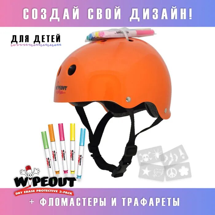 Шлем защитный спортивный WIPEOUT Neon Tangerine с фломастерами и трафаретами размер M 5+ обхват 49-52 см информация: