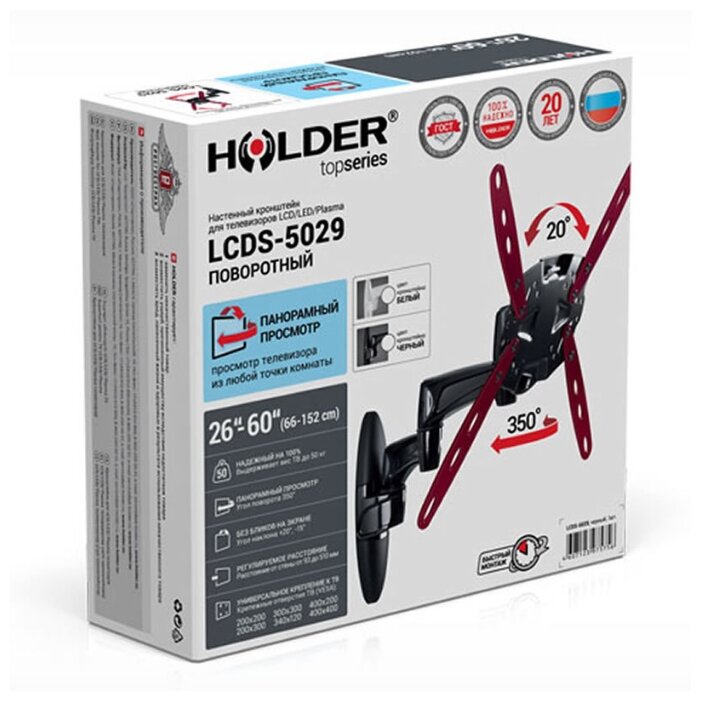 HOLDER кронштейн для ТВ 26"-60" наклонно-поворотный LCDS-5029 белый 3 874 ₽