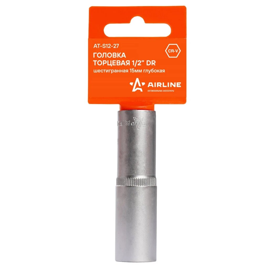 ATS1227 AIRLINE Головка торцевая 1/2 DR шестигранная 15мм глубокая в пакете (AT-S12-27)