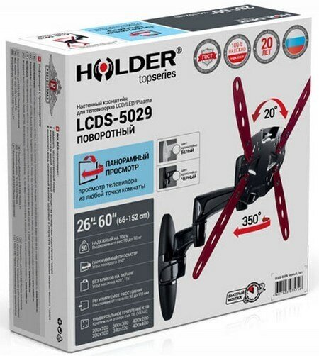 Отзывы на Кронштейн для телевизора Holder LCDS-5029, 26-47", настенный, поворот и наклон, черный