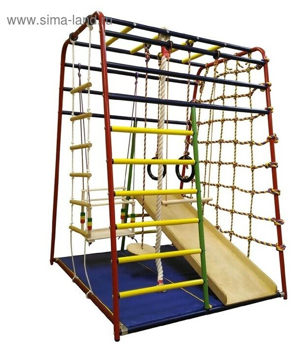 | Комплектация | Горка, канат, качели, кольца, комплекс, лестница, мат, сетка, тарзанка, трапеция |