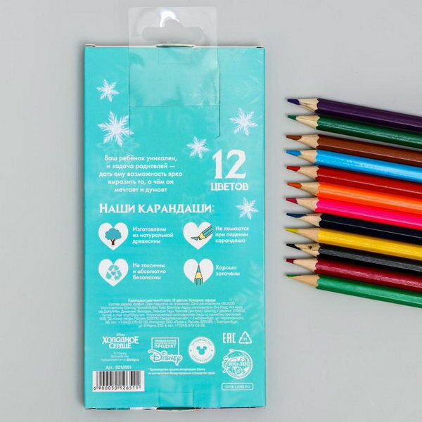 Цветные карандаши, 12 цветов, трехгранные, Холодное сердце информация: