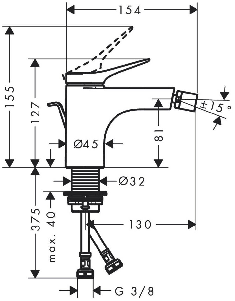 Смеситель для биде однорычажный HANSGROHE Vivenis со сливным гарнитуром, чёрный матовый (75200670) информация: