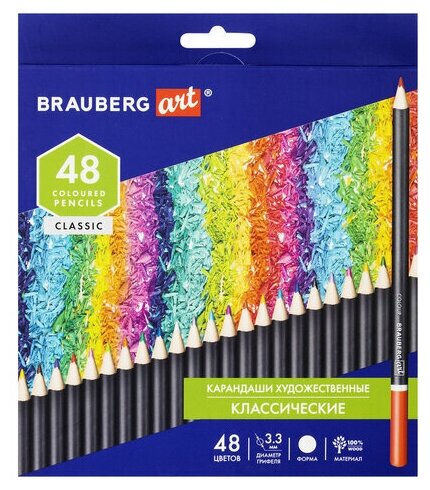 Карандаши цветные художественные BRAUBERG ART CLASSIC. 48 цветов, мягкий грифель 3,3 мм, 181539 585 ₽