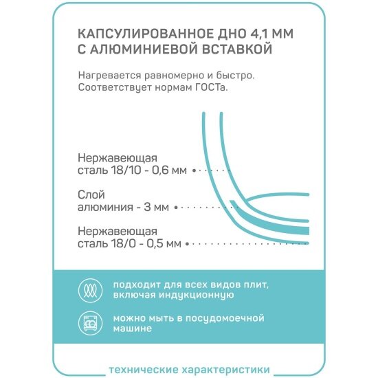 Кастрюля «Классика-прима», 4 л, металлическая крышка, с теплораспределительным слоем