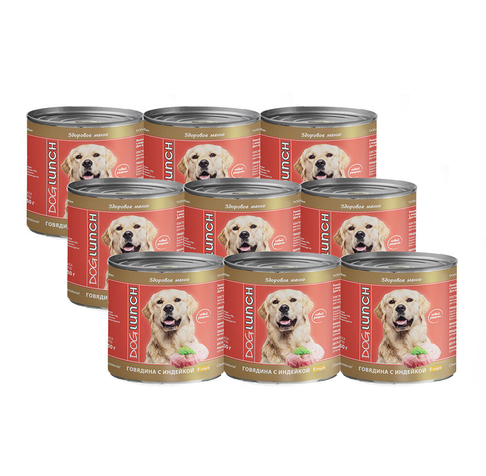 Dog Lunch влажный корм для взрослых собак с говядиной и индейкой в соусе, в консервах - 750 г х 9 шт информация: