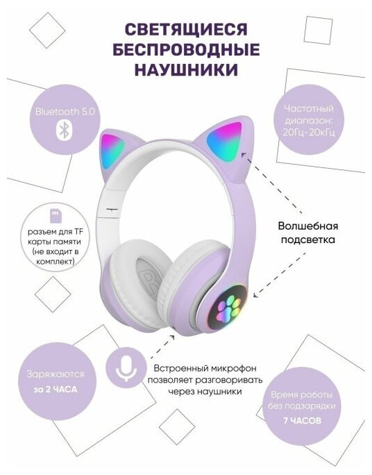 Беспроводные наушники Bluetooth со светящимися кошачьими ушами STN-28 / фиолетовые 666 ₽