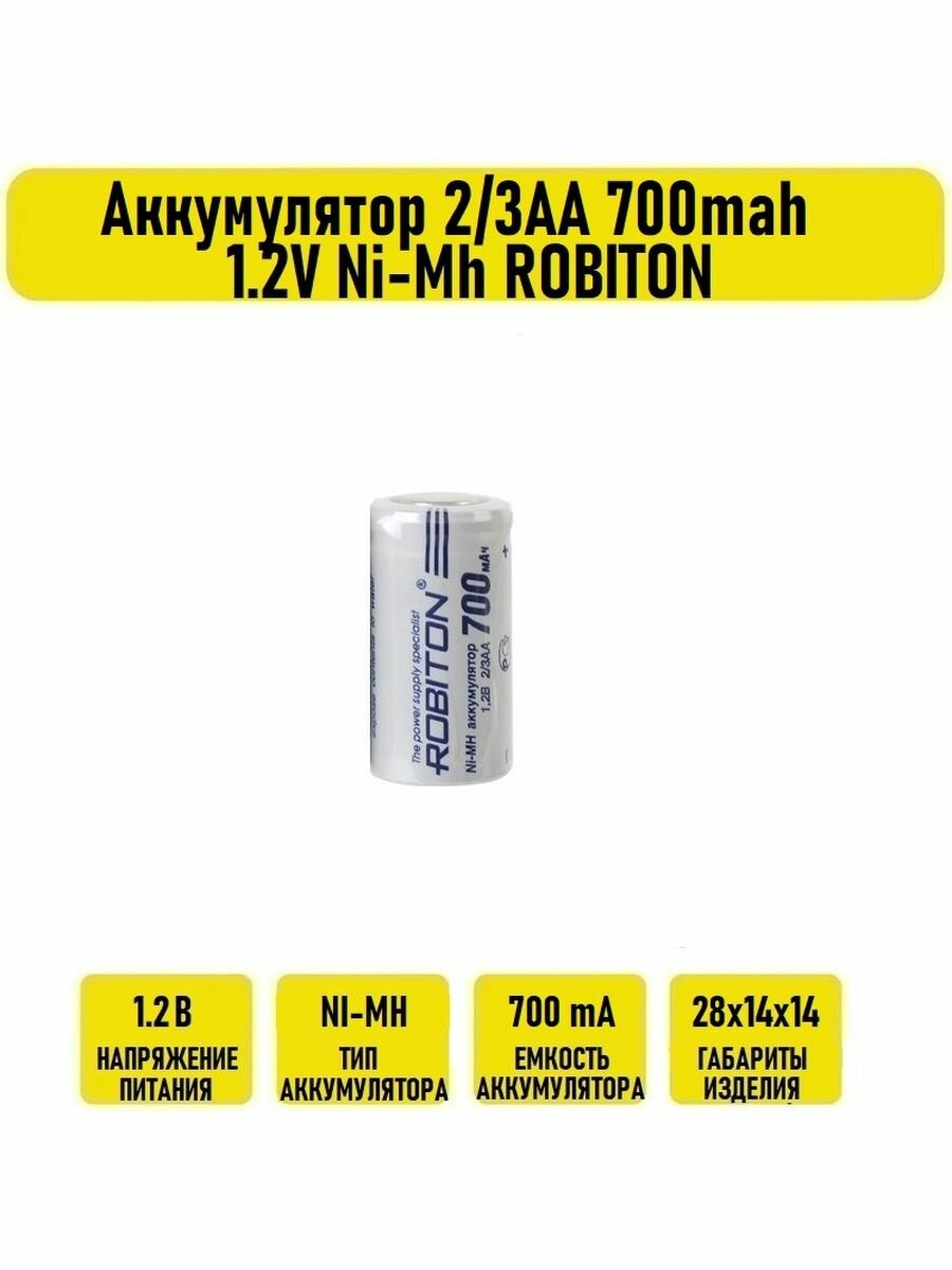 Аккумулятор 2/3АА 700mah 1.2V Ni-Mh ROBITON информация: