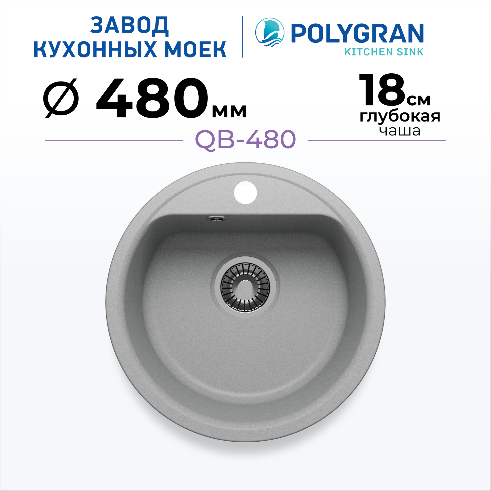 Кухонная мойка кварцевая QUARTZBOND BOND-480 Cерая, круглая (Грей) 5 535 ₽