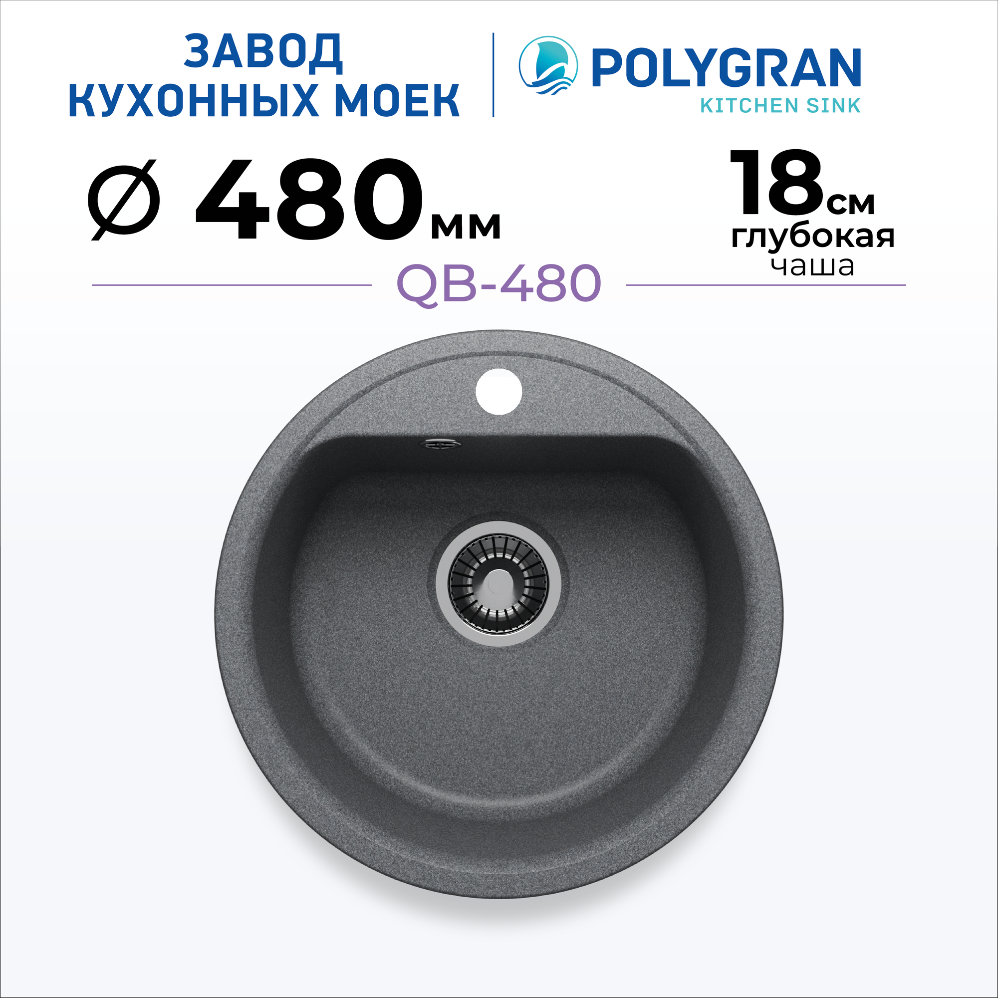 Polygran Мойка кухонная Polygran Quartz Bond 480, уголь, арт,688193 3 900 ₽