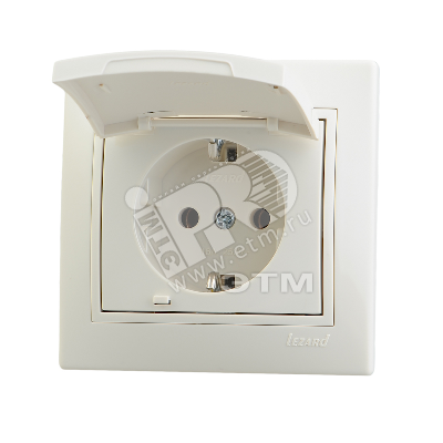 LEZARD Розетка 1-м СП Mira 16А IP20 с заземл. с защ. крышкой со вставкой керамика крем. LEZARD 701-0303-123