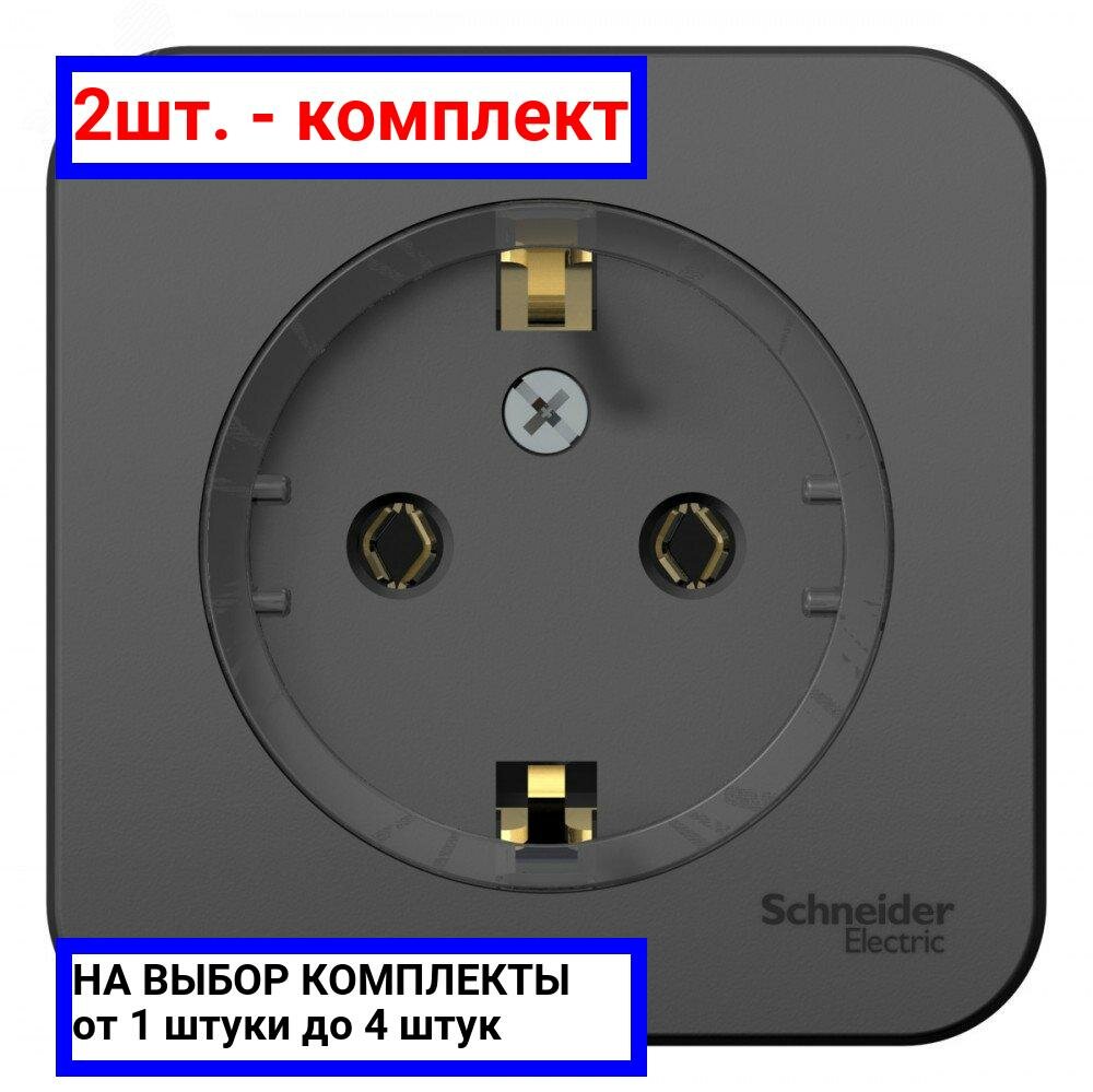 2шт. - Розетка BLANCA наружная, с заземлением, без шторок, (тонкая), с изолирующей пластиной 16А, 250В, антрацит / Systeme Electric; арт. BLNRA110116; оригинал / - комплект 2шт информация:
