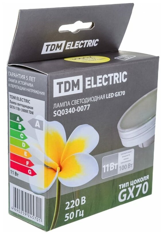 Лампа светодиодная GX70-11 Вт-3000 К TDM информация: