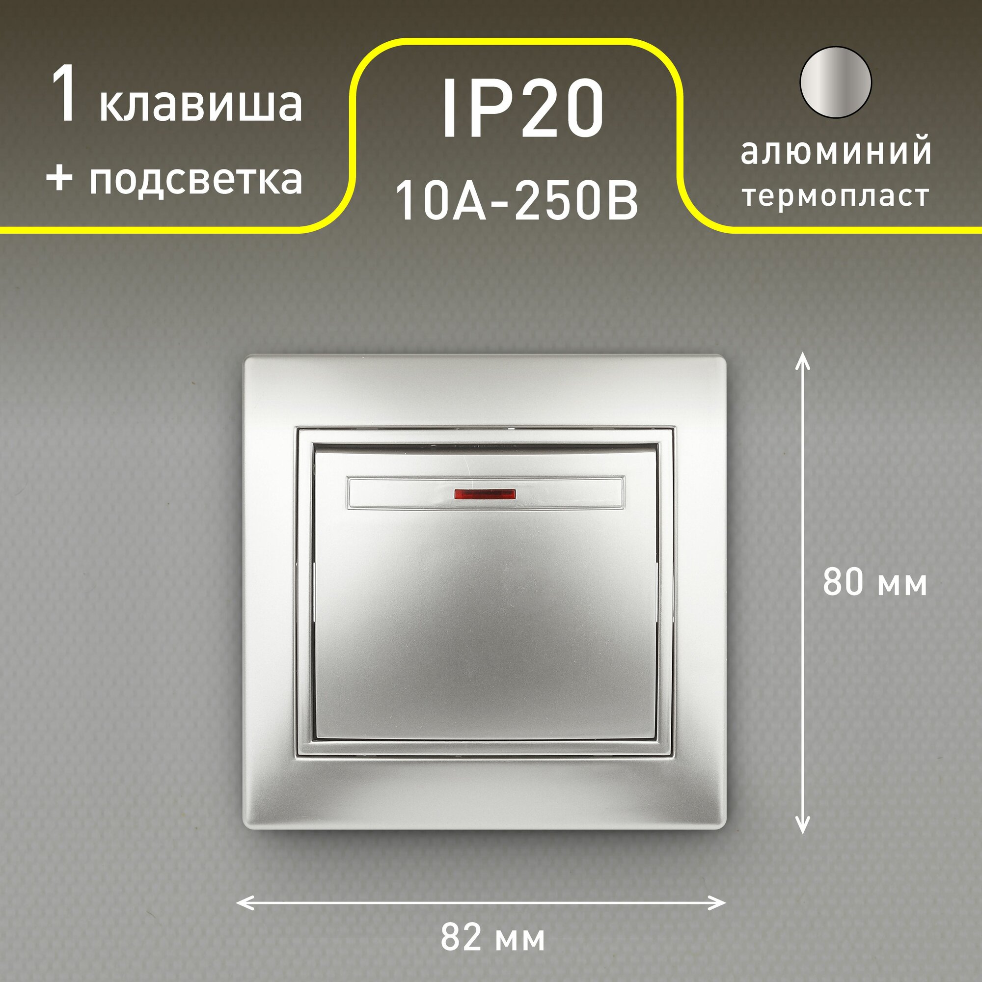 Выключатель Intro Plano 1-102-03 одноклавишный с подсветкой 10А-250В IP20 СУ алюминий информация: