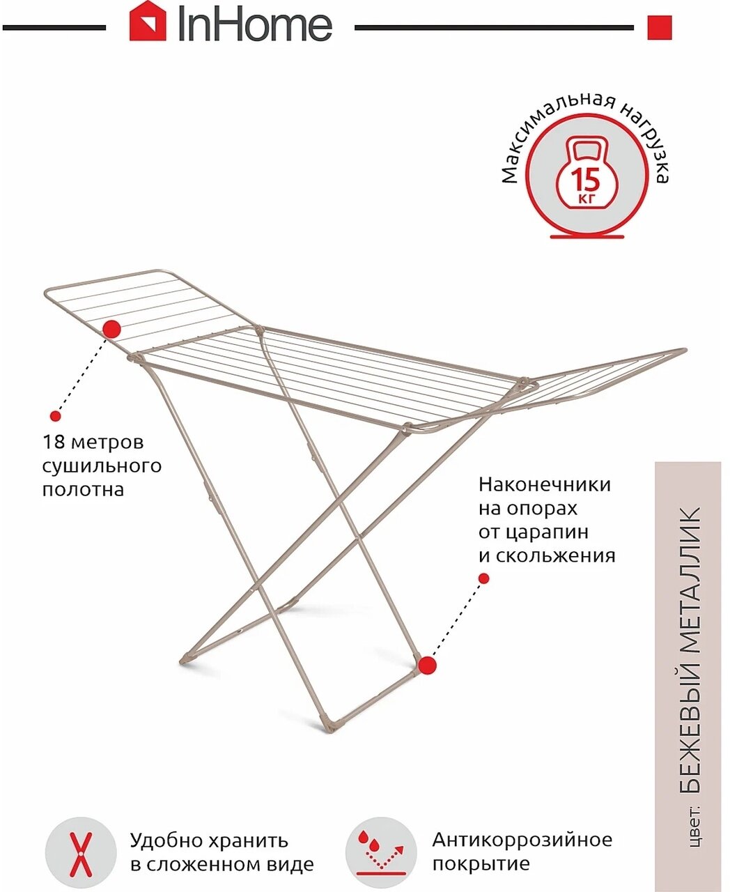 Сушилка для белья InHome напольная раскладная,181x54х108 см, 18 м бежевая INCD1/2 .