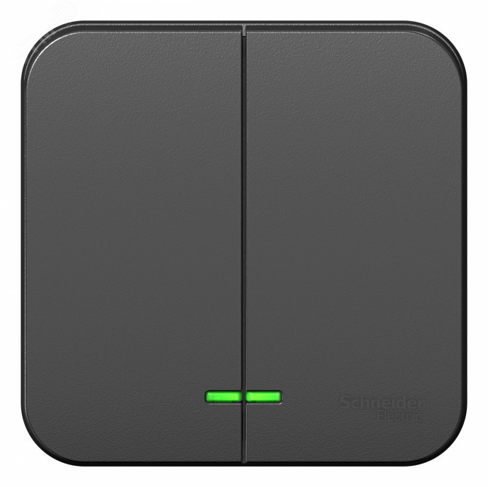 1шт. - Выключатель BLANCA двухклавишный наружный (схема 5) с подсветкой и изоляционной пластиной 10а 250b антрацит / Systeme Electric; арт. BLNVA105116; оригинал / - комплект 1шт