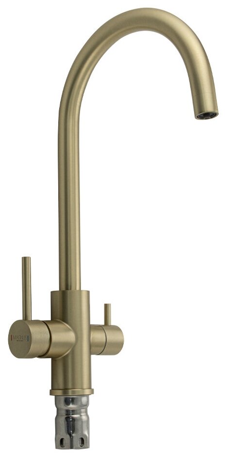 Смеситель кухонный С-образный излив, золото, шаровый, с двойным выпуском воды для фильтра, из нержавеющей стали марки 304 MAGNUS информация: