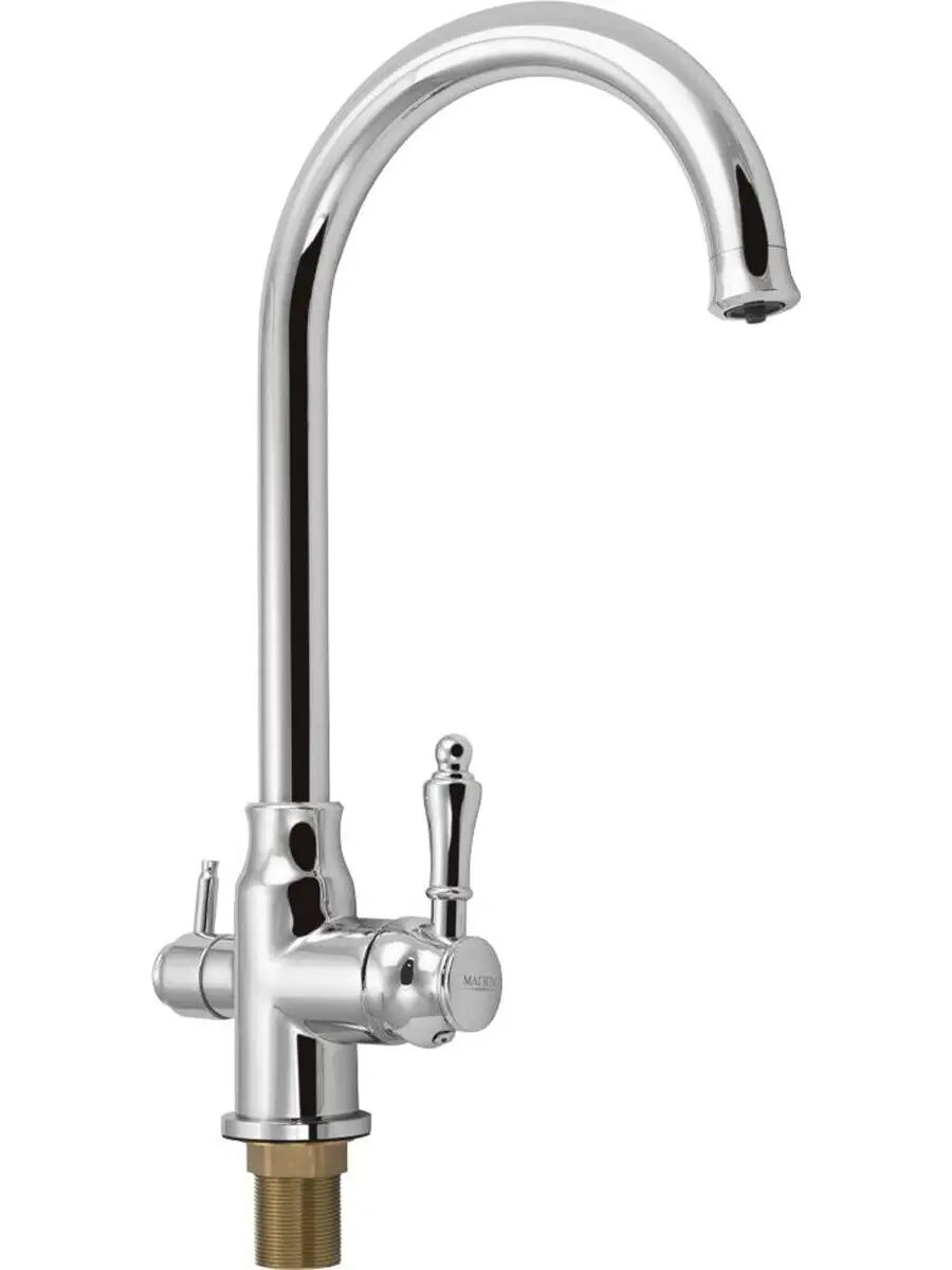 MAGNUS(8243) - Смеситель кухонный С-образный излив хром , шаровый , с двойным выпуском воды для фильтра, материал латунь,