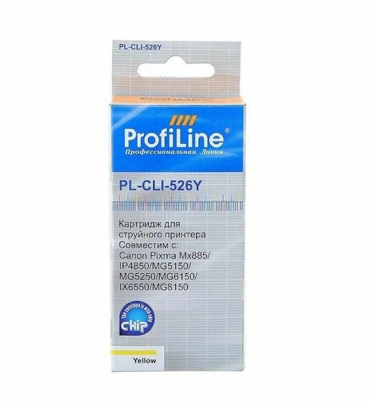 Струйный картридж PL-CLI-526Y для принтеров Canon PIXMA iP4850/iP4950/MG5150/MG5250/MG5350/MG6150/MG6250/MG8150/MG8170/MG8250/iX6550 с чернилами на водной основе Yellow 9 мл ProfiLine