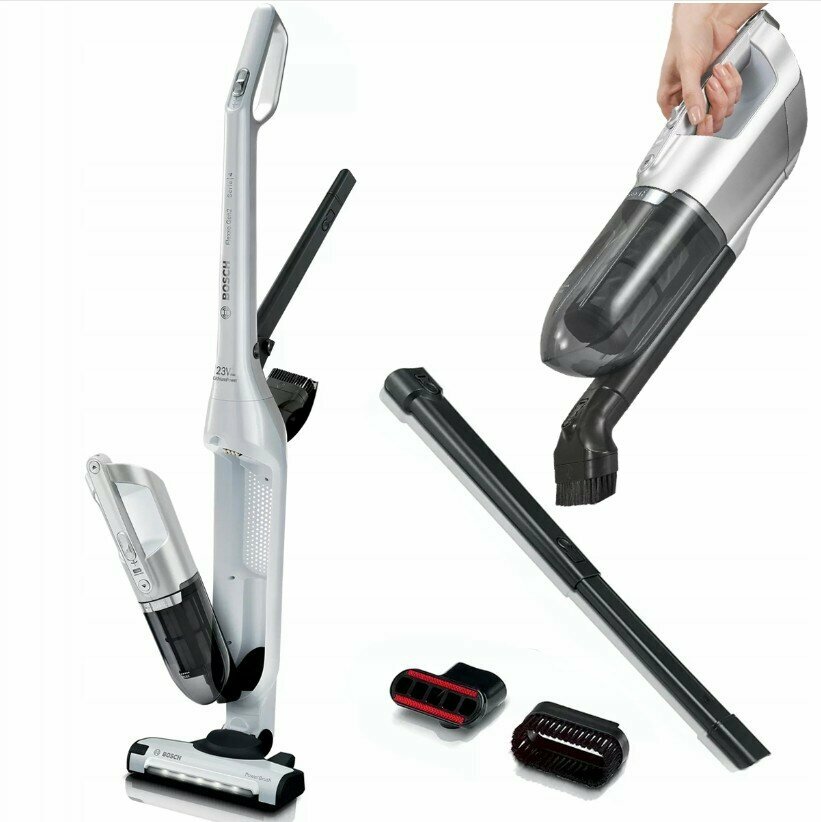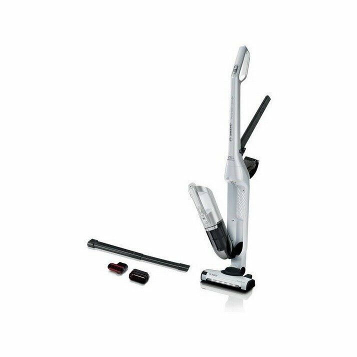 | Дополнительная информация | 2 в 1: Съемный портативный пылесос и стандартный беспроводной; ионная технология от Bosch обеспечивает сверх продолжительное время работы для стабильно безупречного результата и быструю зарядку аккумулятора; турбощетка PowerBrush с LED подсветкой подходит для уборки любых напольных покрытий; два уровня регулировки мощности |