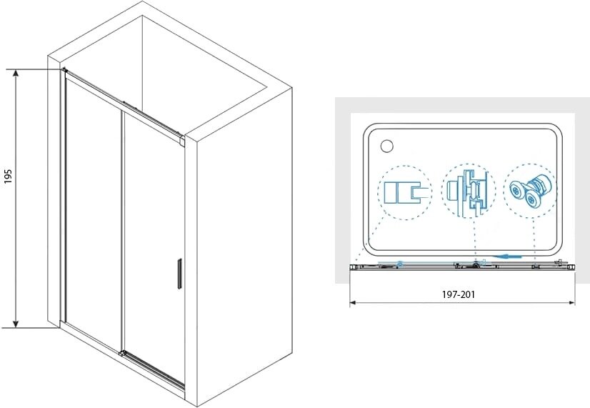 Душевая дверь в нишу RGW Leipzig Le-12 (197-201) x195 профиль хром, стекло прозрачное 34121220-11 информация:
